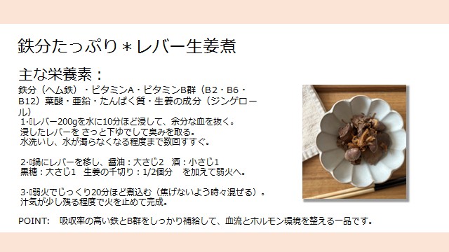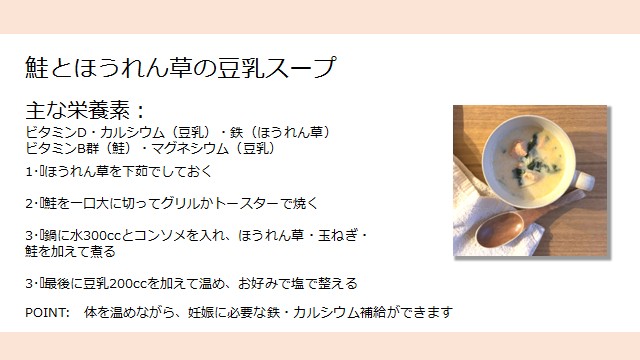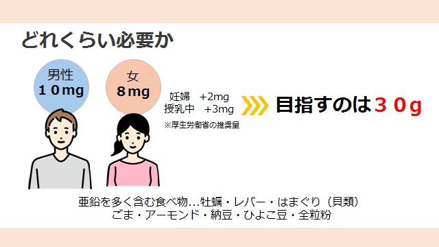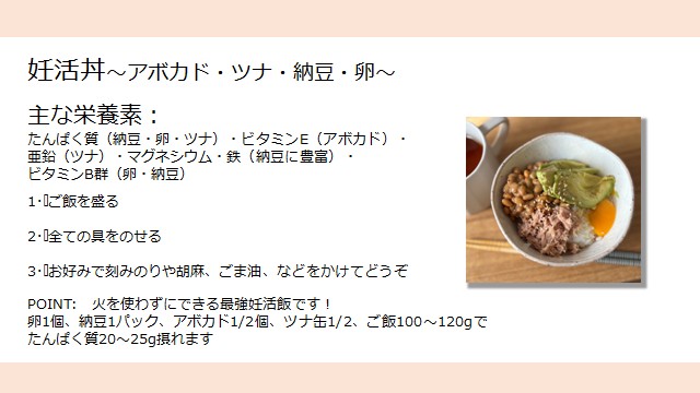若山先生には7月の患者会でも講演をしていただきましたが、好評につき今回も妊娠に必要な栄養についてお話していただきました。そのなかでタンパク質、亜鉛、鉄についてはどのような食材にどのくらい含まれているのか、1日に必要な目安量など、具体的に詳しくレシピの紹介もありましたので参考にしてください。